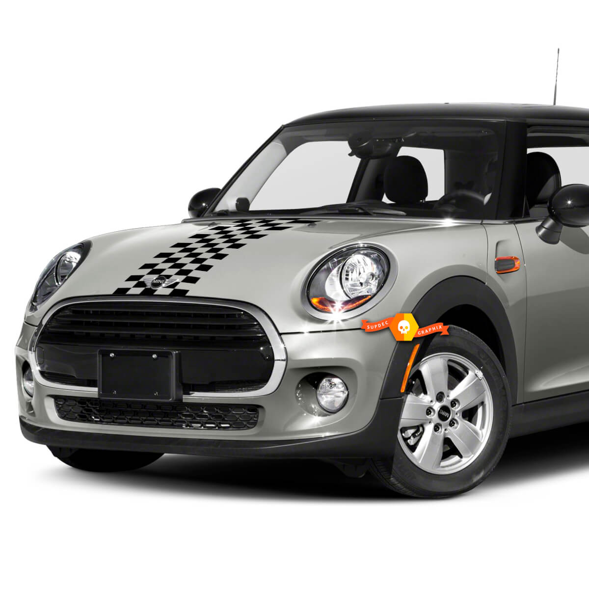 Mini Cooper Checkered Hood Flag Stripes Vinyl Decals Stickers