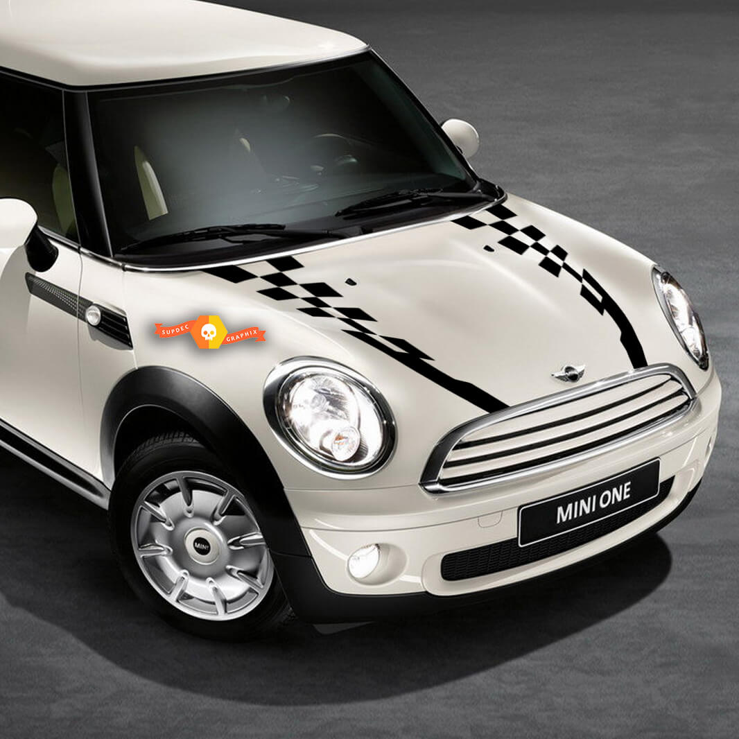 2007-2021 Mini Cooper Checkered Hood Side Back Bonnet Racing Stripes Stickers Decals