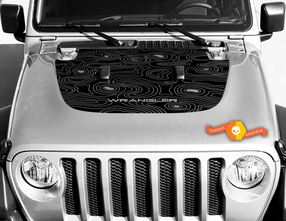 Jeep Hood Vinyl Blackout Topographic Map Decal Sticker Text Wrangler