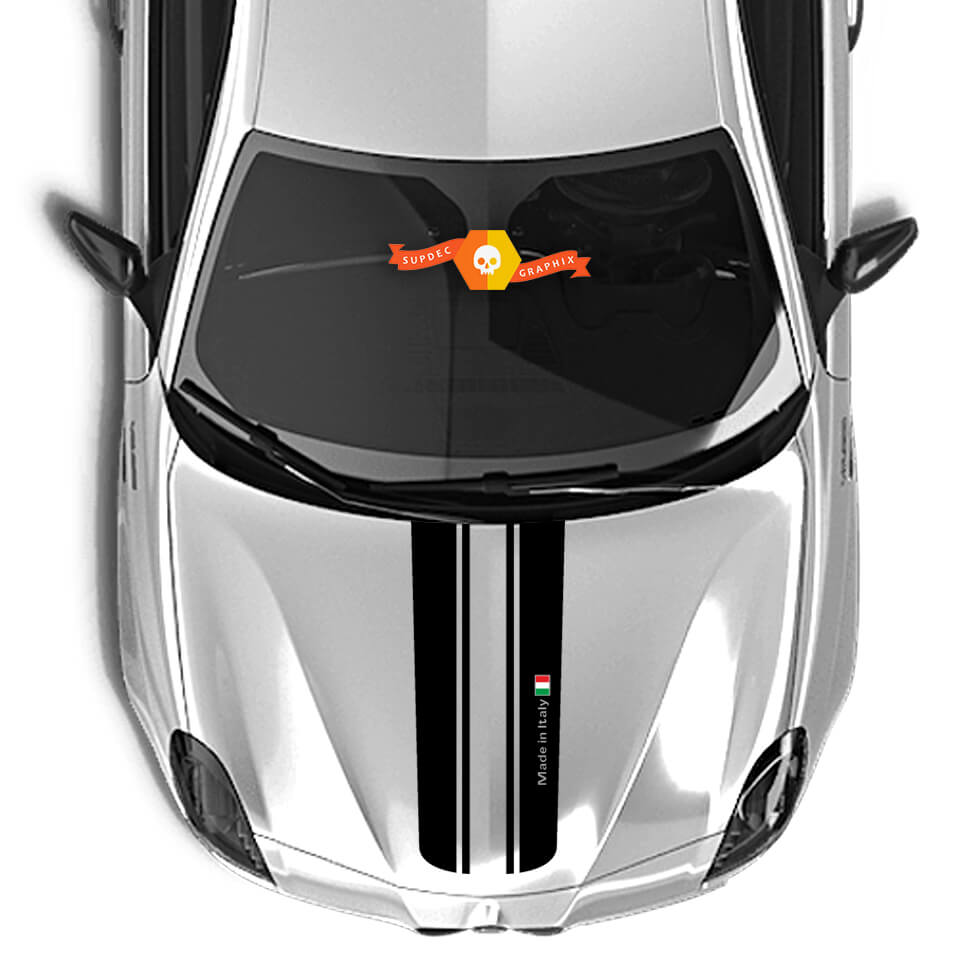 Il design dell'adesivo "Made in Italy" è completato da una piccola bandiera italiana, creando un aspetto elegante e di classe. Questi adesivi per il cofano sono progettati per mettere in risalto l'origine del tuo veicolo e aggiungere un tocco di stile italiano.