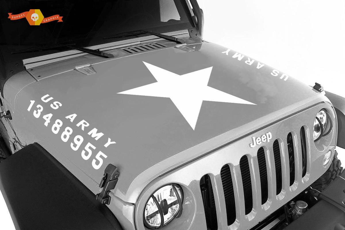 2 Jeep Wrangler Army USA style Hood Vinyl Decal Sticker CJ XJ YJ TJ