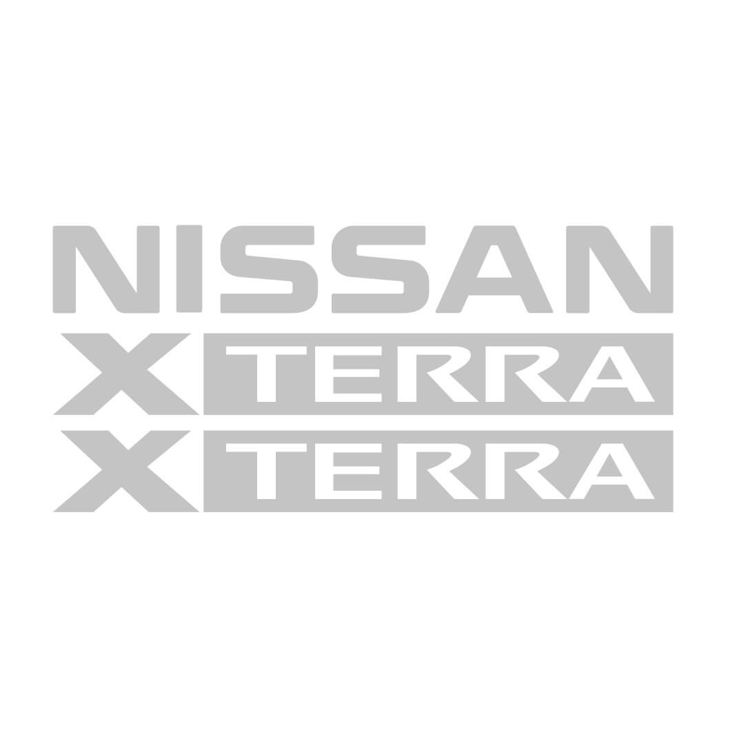 Nissan Xterra Silver Air Dam "Nissan" decal. This is a replacement for the Nissan label on the air dam on the top of the vehicle. Over time these decals become faded or start peeling due to being exposed to direct sunlight. OEM Xterra Roof Rack Side Rail Sticker for your 2005-2015 Nissan Xterra.