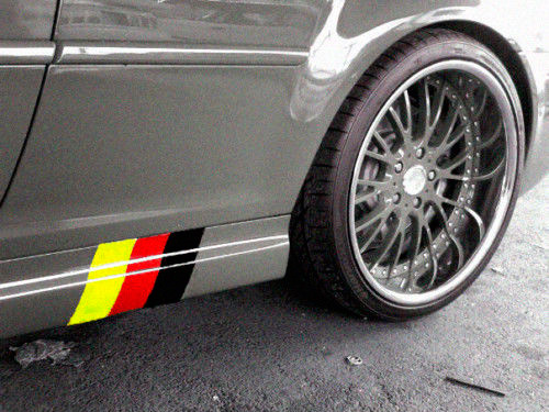 Emphasize your attachment to German automotive culture and give your car a unique look with our set of side skirt stickers. Add some bright colors and a unique style to your car today!