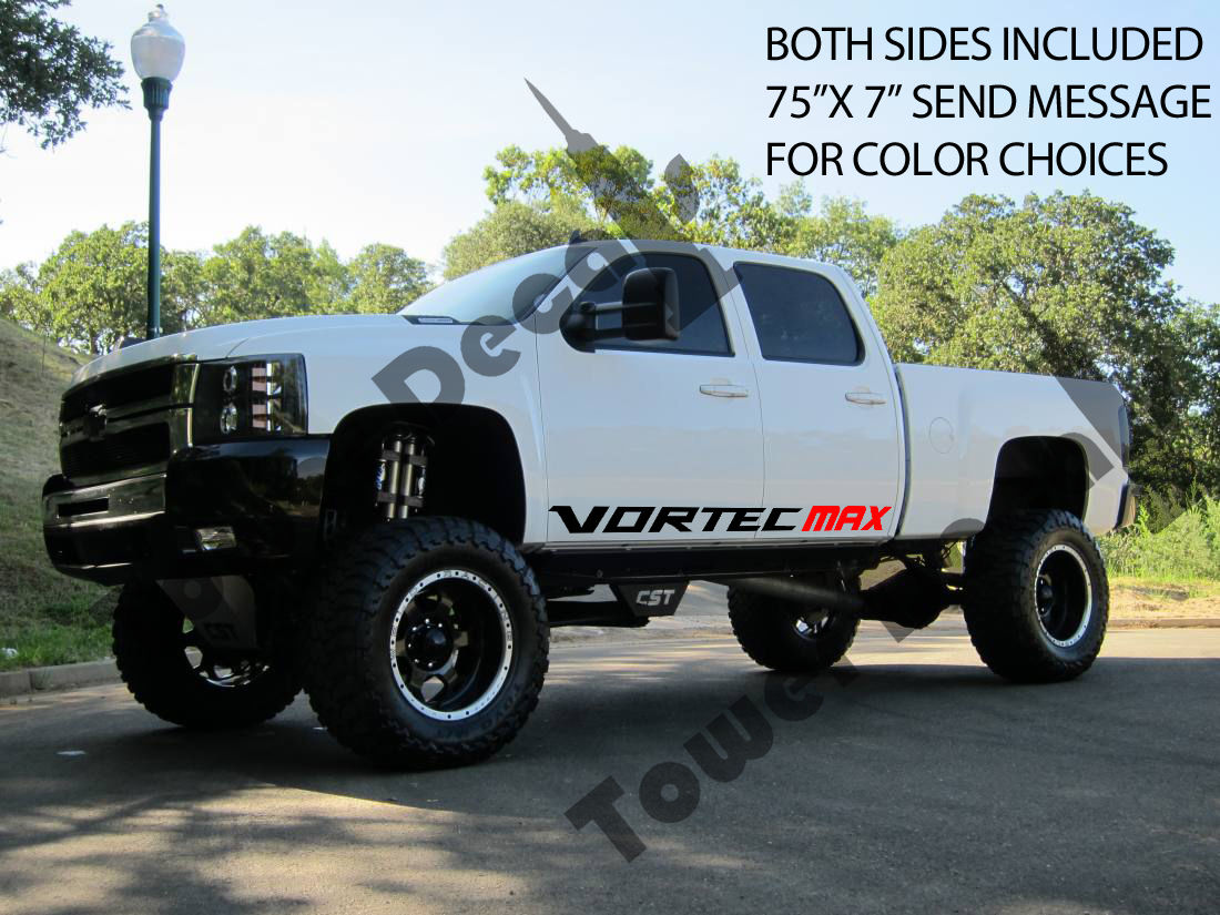2 VORTEC MAX rocker panel door runner Stickers Decals Chevy Silverado GMC Sierra 75"x7"