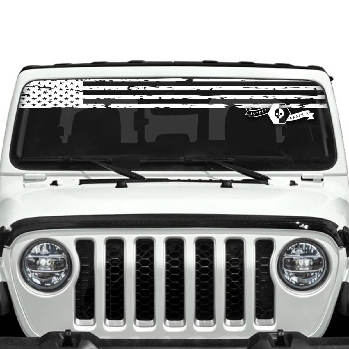 Jeep Gladiator Windshield USA Flag Destroyed Stickers Decals Vinyl Graphics