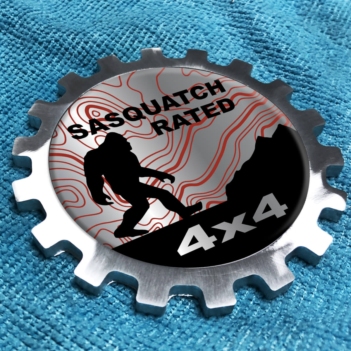 Sasquatch Rated 4x4 Metal Aluminum Badge Bedside Gear Emblem Aluminium