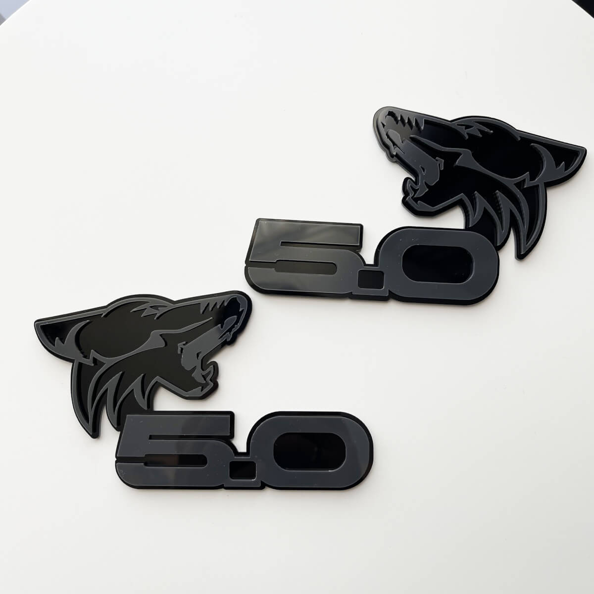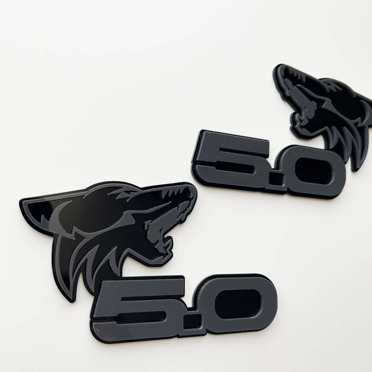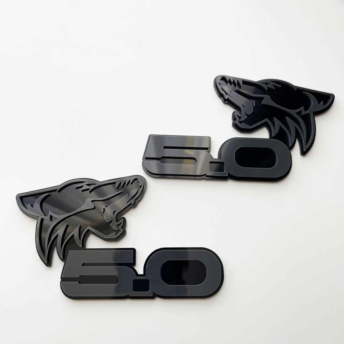 COYOTE 5.0 Fender Badges Emblem 3D Badge Black vs Grey