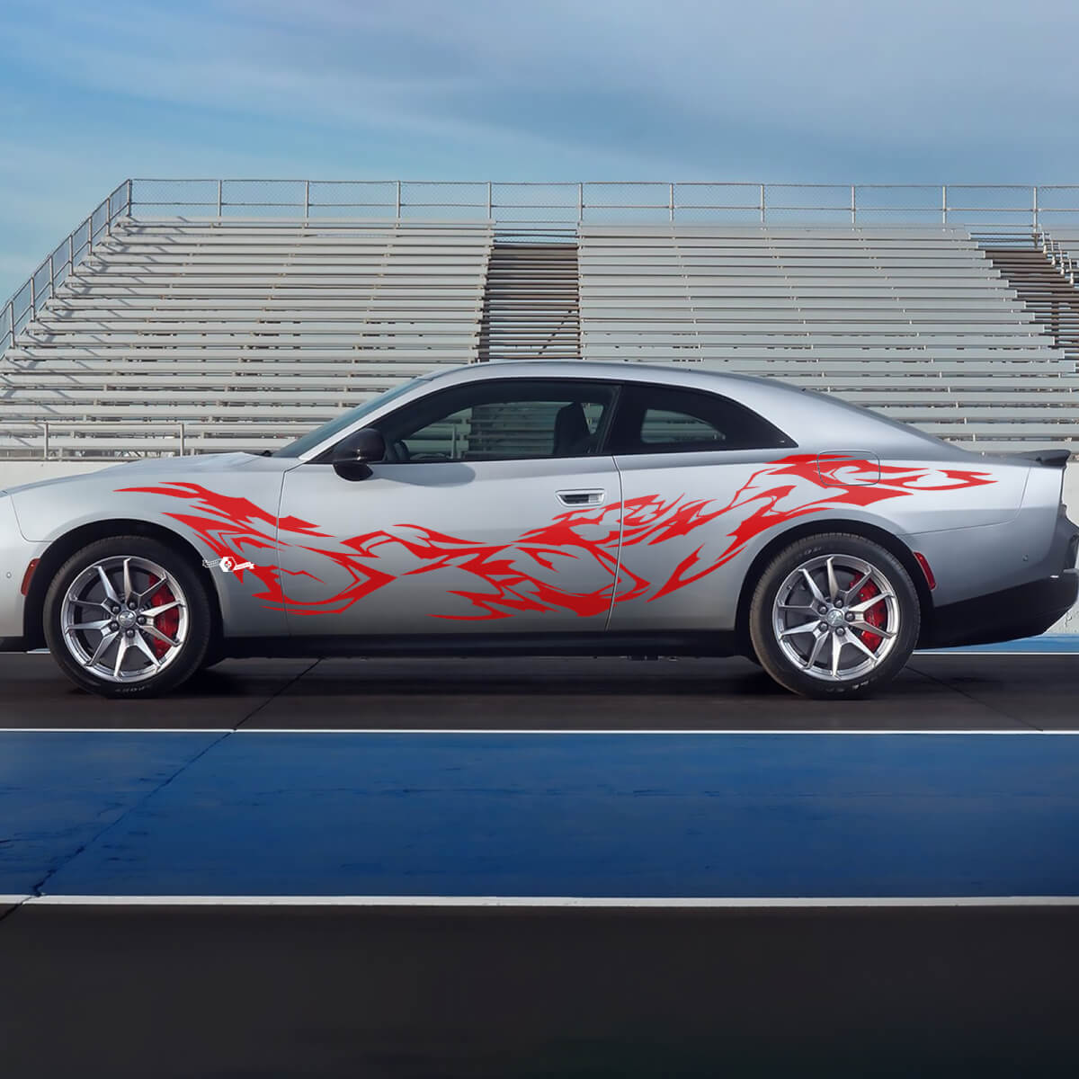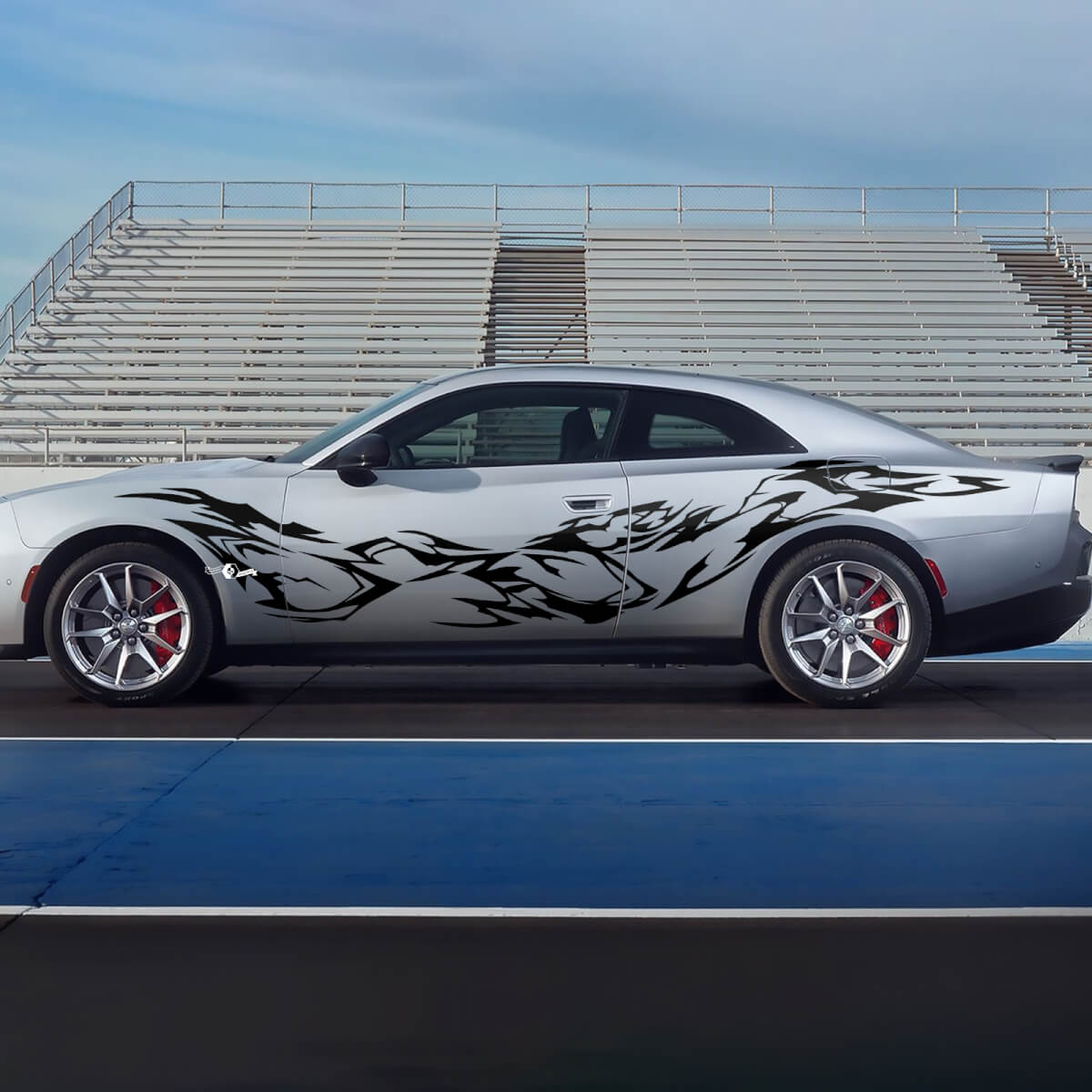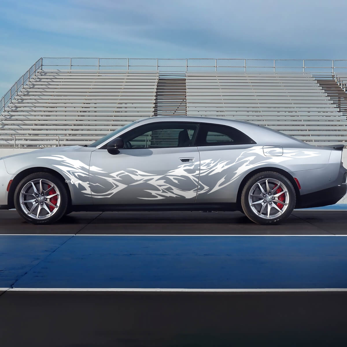 Enhance the sporty look of your Dodge Charger Electric with **Side Rocker Panel Decal Stripes**. These high-quality vinyl graphics add a sleek, performance-inspired touch to your vehicle while maintaining its modern electric aesthetic.