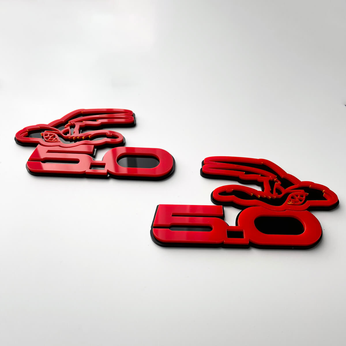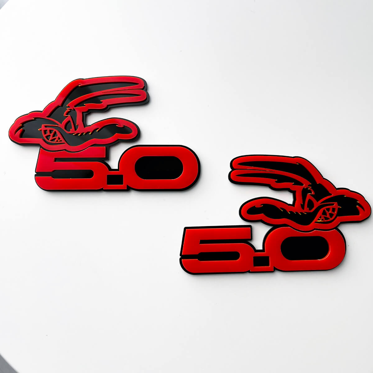 - COYOTE 5.0 3D Fender Badges Emblem available in Black and Red