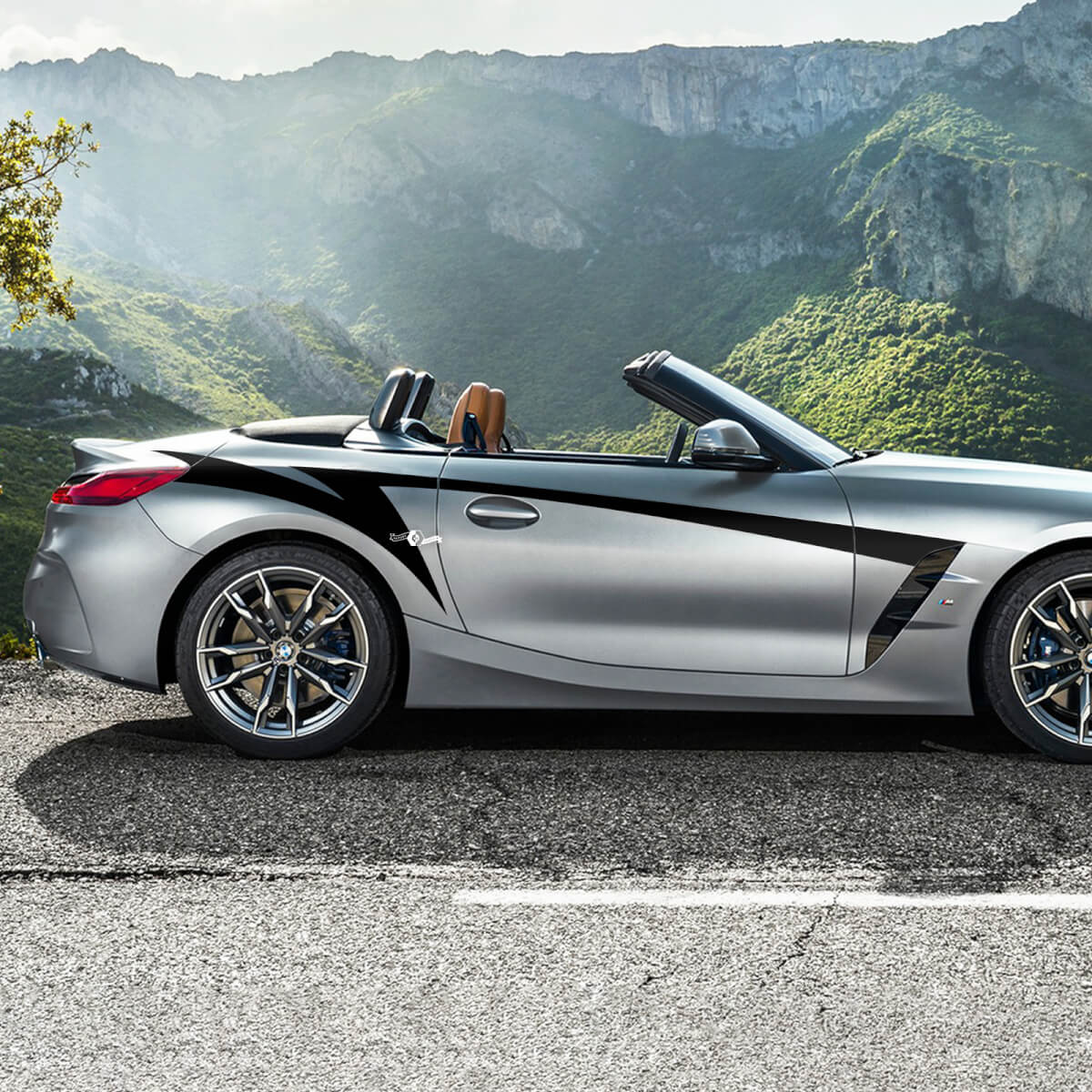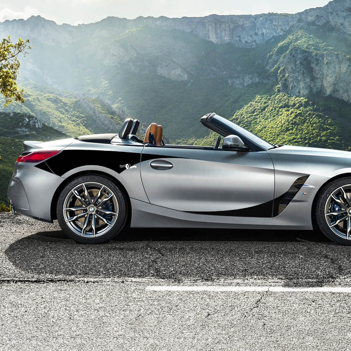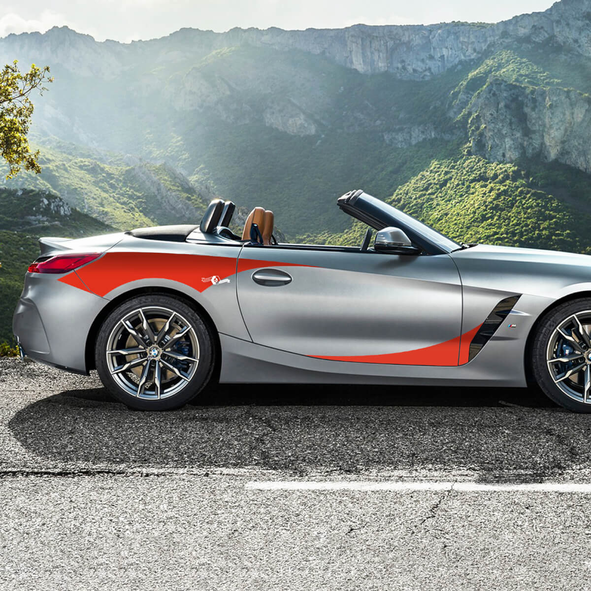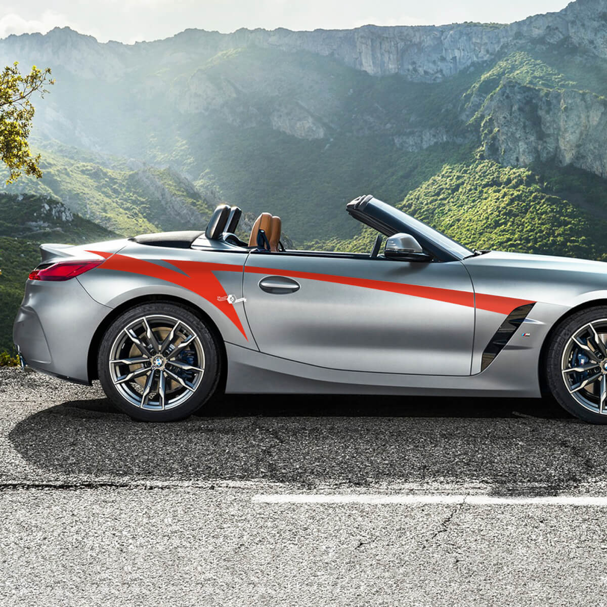 Enhance the sleek and sporty appearance of your BMW Z4 with these Side Door Accent Stripes Vinyl Decal Stickers. Designed to complement the dynamic lines of your Z4, these custom vinyl decals add a touch of modern style, perfect for car enthusiasts who want to make a subtle yet impactful statement. Made from premium, weather-resistant vinyl, these decals are crafted for long-lasting durability and vibrant color retention in all conditions. The easy peel-and-stick application allows for seamless installation on the side doors, giving your BMW Z4 a custom, high-performance look.