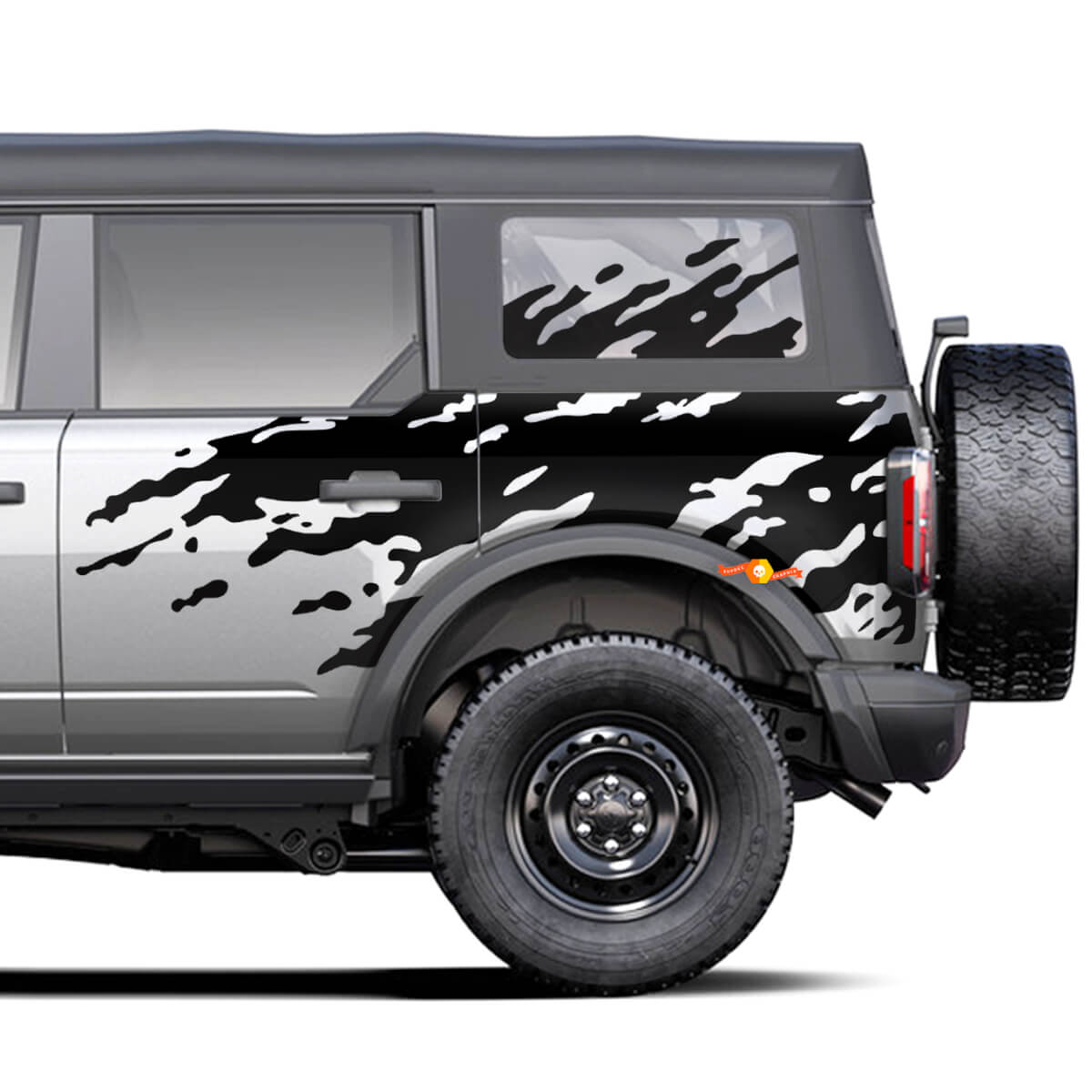 Transform your Ford Bronco with these rugged Mud Splash Side Decals Stickers. Designed to capture the adventurous spirit of off-road enthusiasts, these decals feature a bold mud splash design that adds a dynamic, trail-ready aesthetic to your Bronco. Made from premium, weather-resistant vinyl, these stickers ensure long-lasting durability and vibrant colors that withstand the elements. The easy peel-and-stick application guarantees a precise fit, allowing you to personalize your Ford Bronco with a professional-grade, off-road-inspired finish.