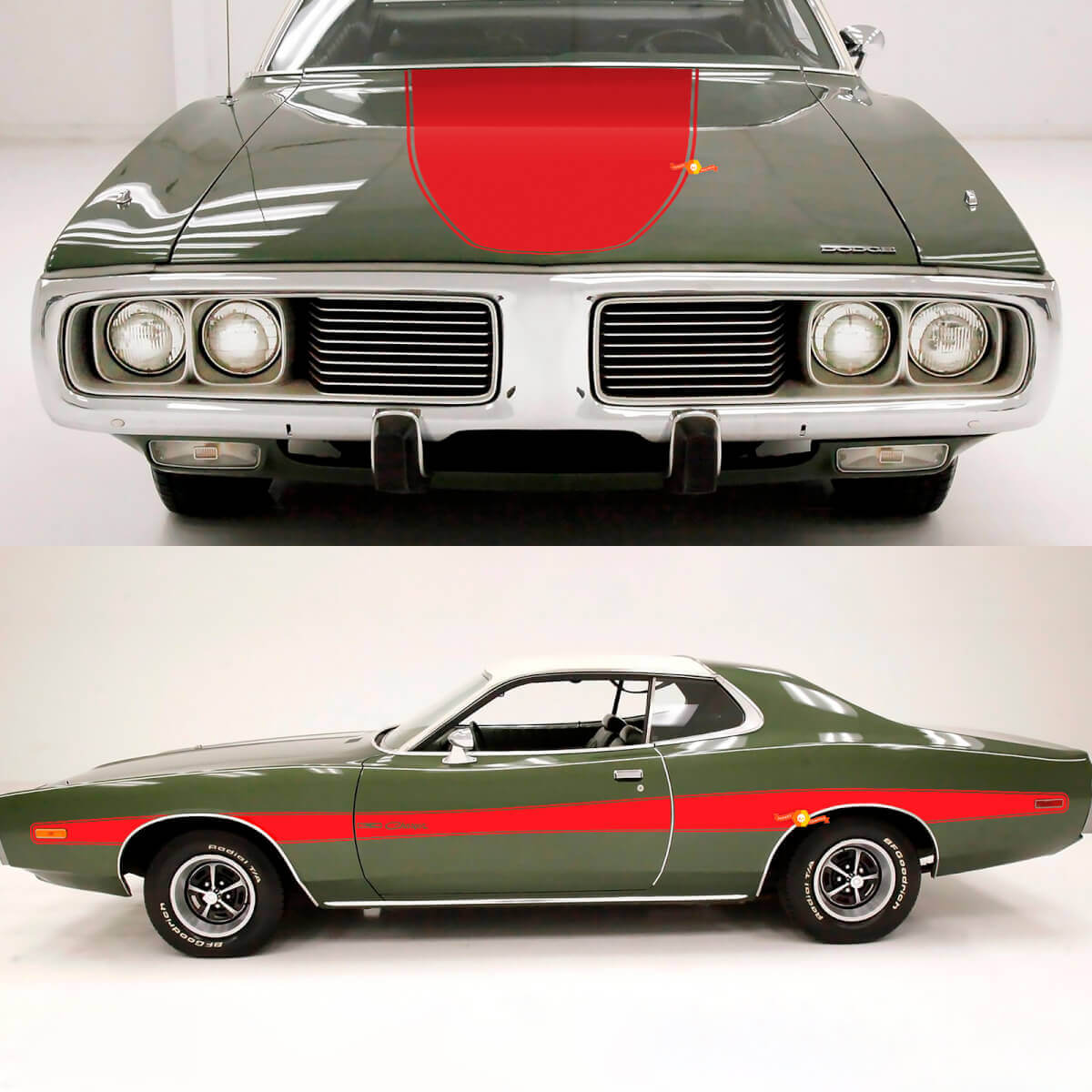 Introducing our 1973-74 Charger Side Accent Stripe Hood Kit Vinyl Decals Stickers!