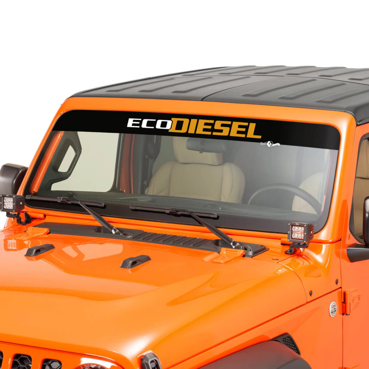 Show your EcoDiesel pride with this bold Windshield Vinyl Decal designed for Jeep vehicles. Featuring clean, aggressive graphics, this decal sits perfectly across the top of your windshield — giving your Jeep a distinctive off-road or diesel-enthusiast identity.