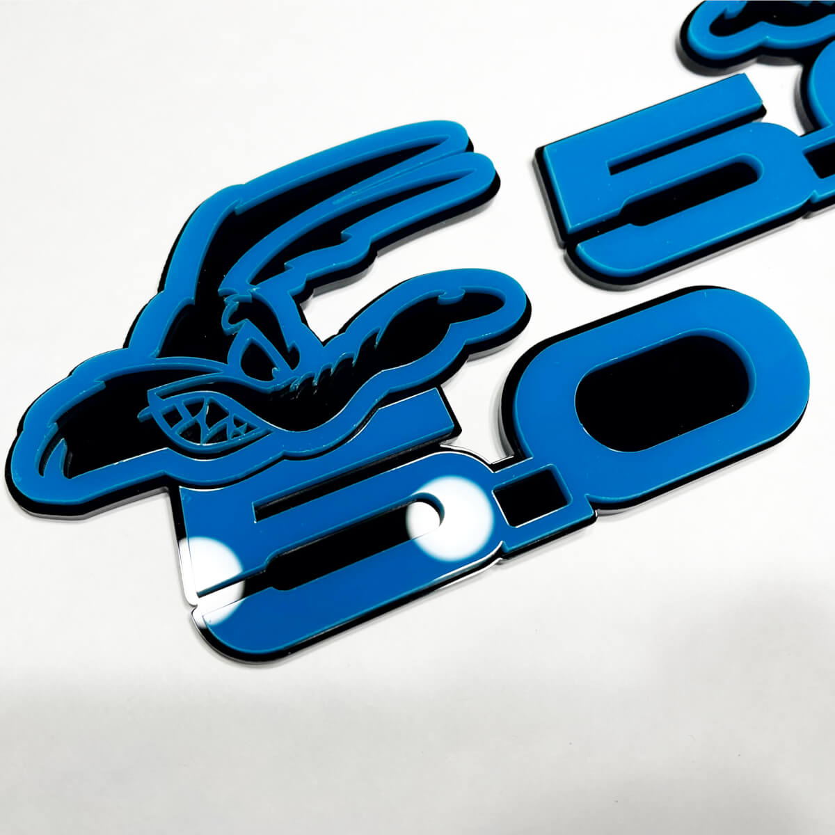 COYOTE 5.0 Fender Badges Emblem 3D Badge Black vs Blue