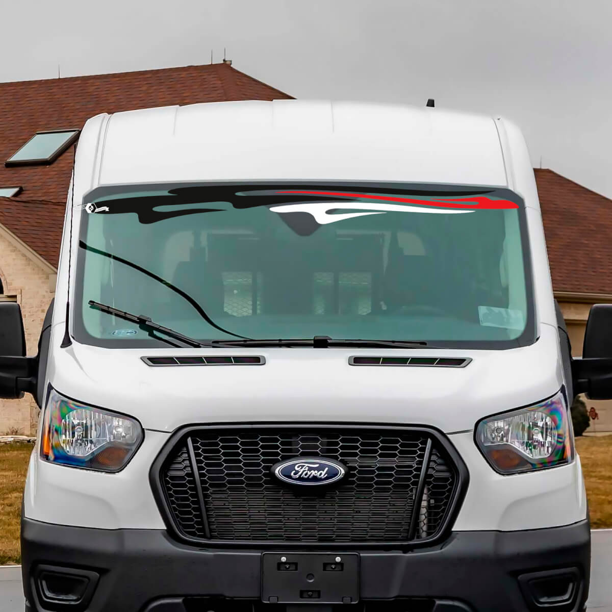 Kuwerda ng ang hitsura sa imong Ford Transit uban niining Windshield Stripe Vinyl Decal. Gi-desinyo alang sa kagamitan ug estilo, kini nga stripe nagdugang ug usa ka limpyo, agresibo nga aksento sa ibabaw sa windshield — nga naghatag sa imong van ug usa ka moderno ug propesyonal nga anggulo.