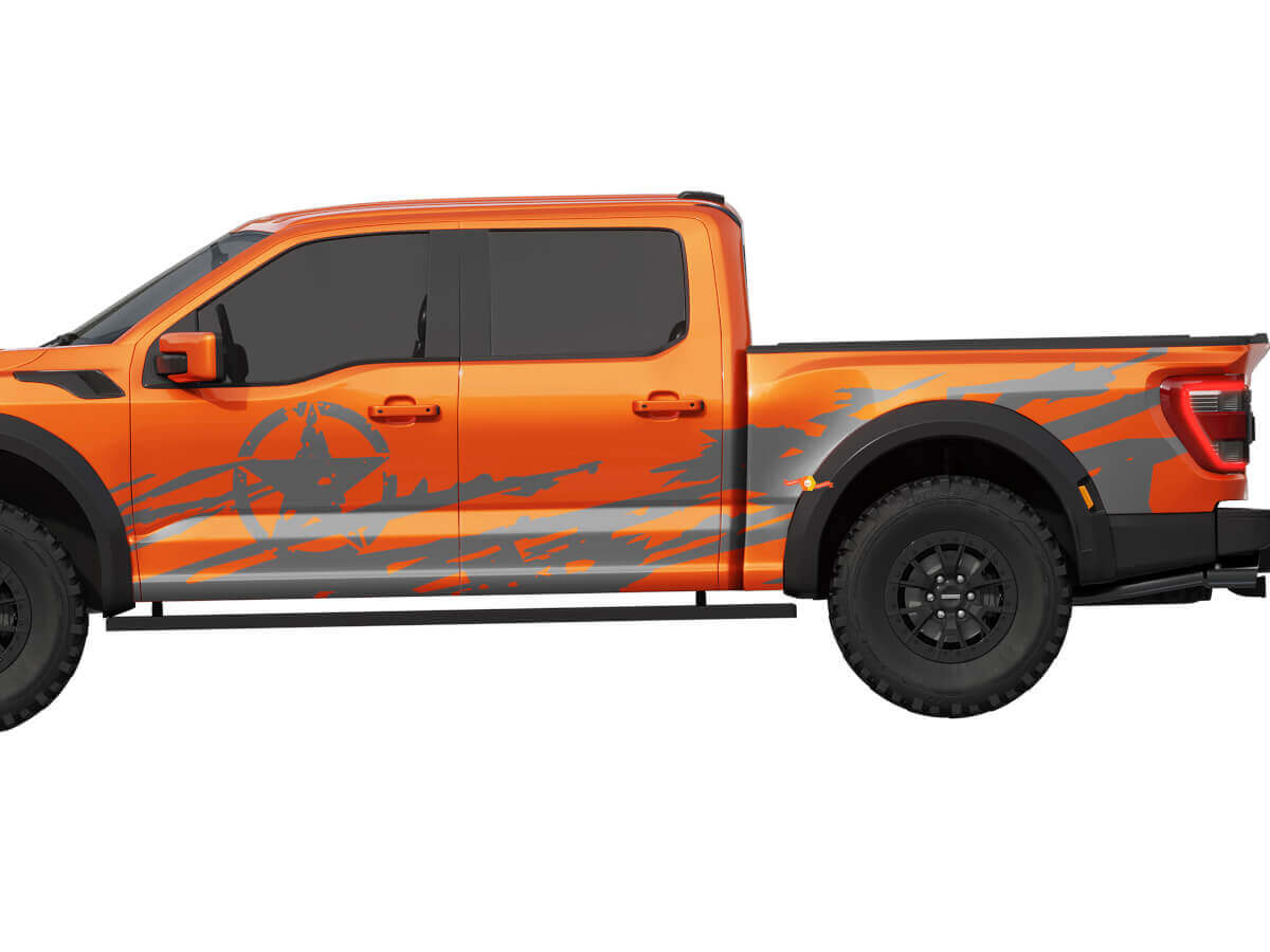 Enhance Your Truck's Look with Universal Military Star Side Splash Truck Decal Graphics