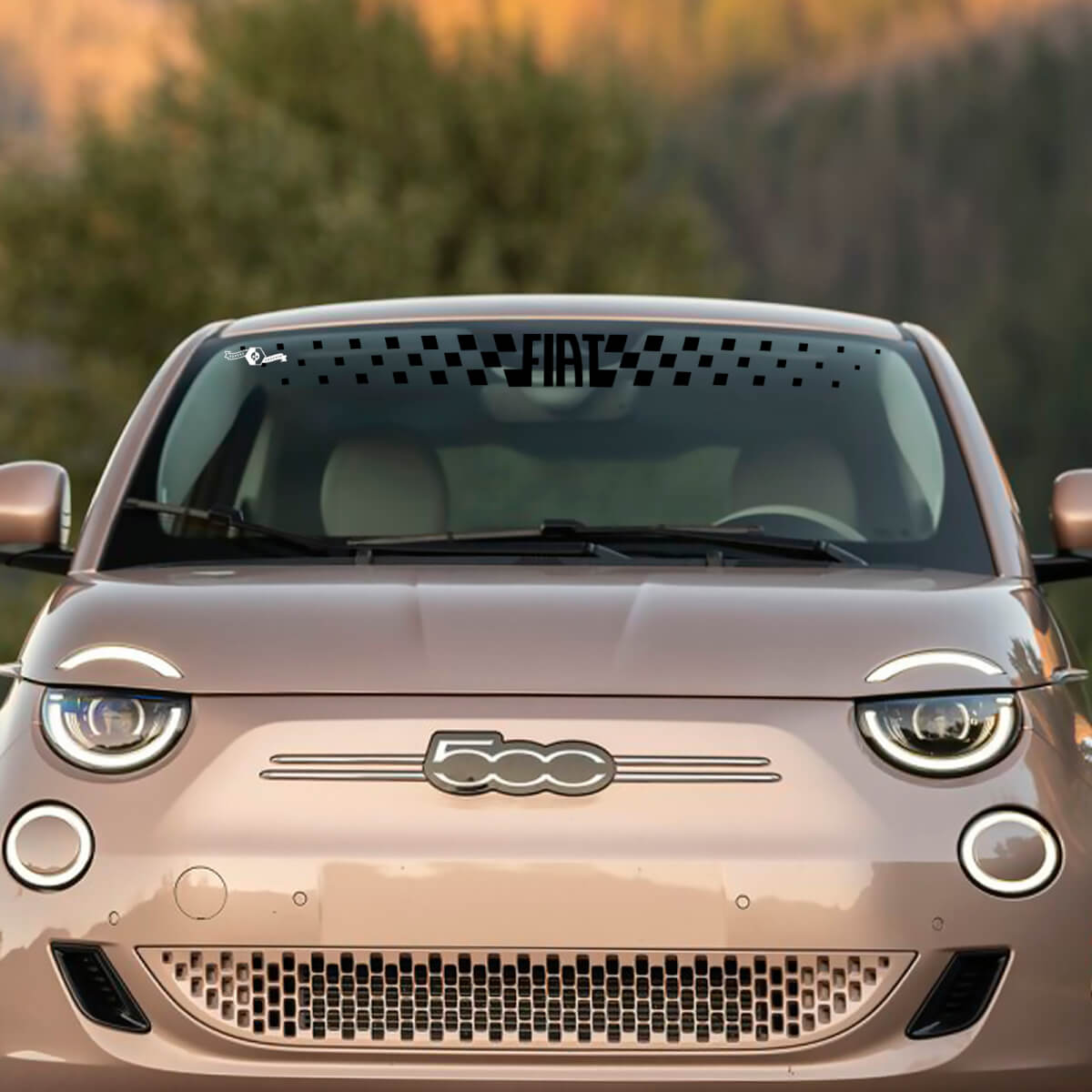 Enhance Your Fiat 500 with Front Windshield Checkered Stripe Decal Graphics