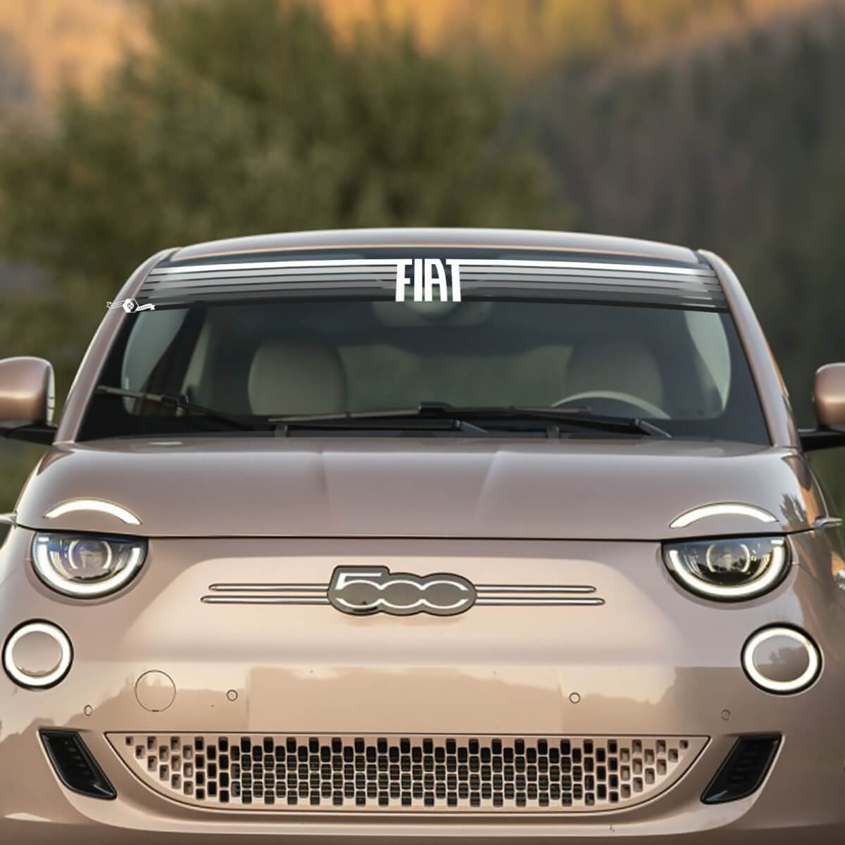These decals are specifically designed to complement the sleek lines and contours of the Fiat 500's windshield, ensuring a seamless and professional look once applied. Enhance the overall appearance of your vehicle with these custom-made graphics that fit like a glove.