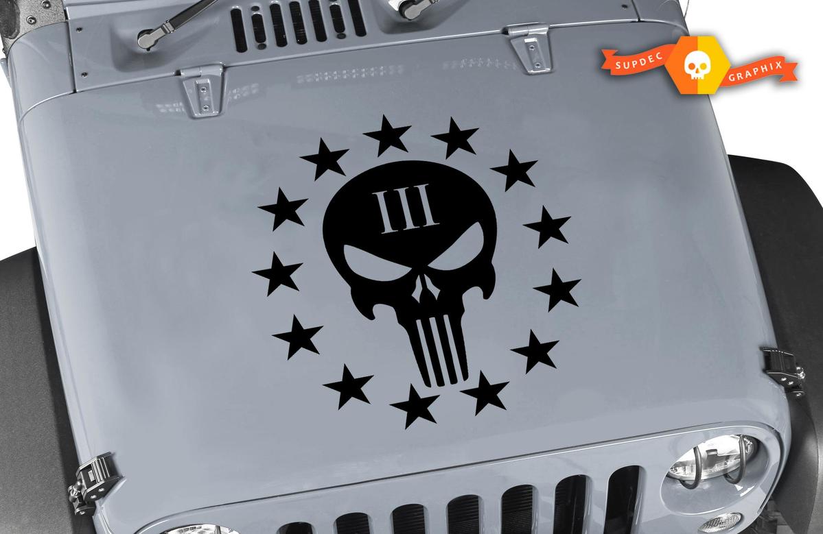 Jeep Wrangler Punisher III Vinyl Hood Decal 20"x20"