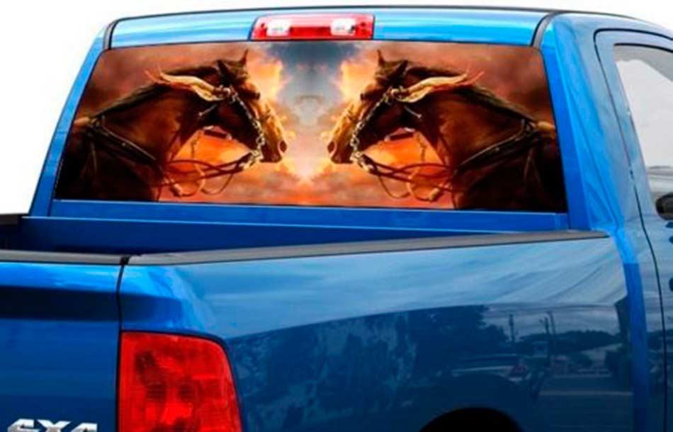 Two horses on cloud Rear Window Wrap Graphic Decal Sticker Truck SUV pick-up car Please make sure that this size will suit your truck. This will be applied to the outside of your window.