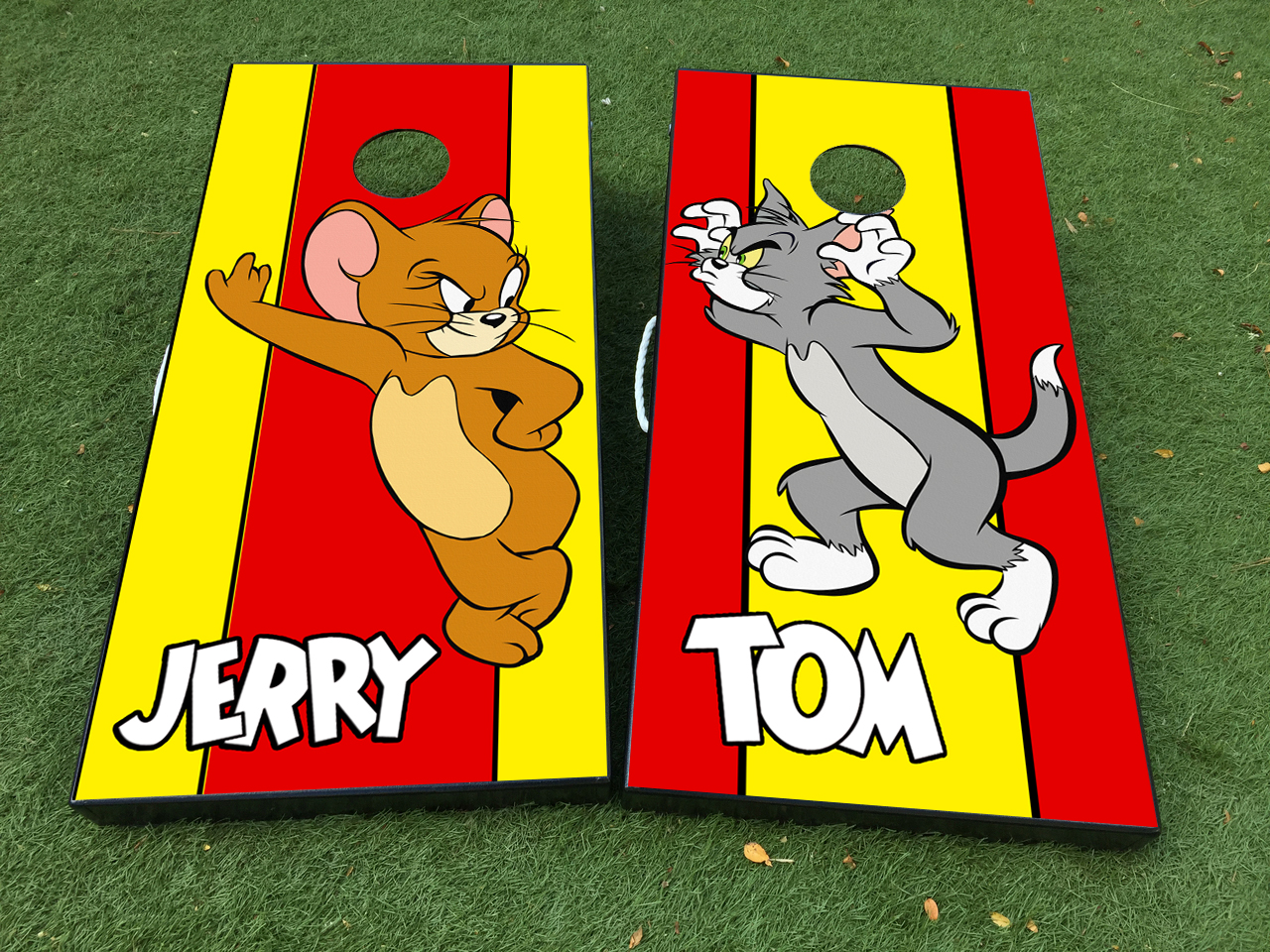 Tom And Jerry Cartoon Cornhole Board Game Sticker Decal VINYL WRAPS with LAMINATED
