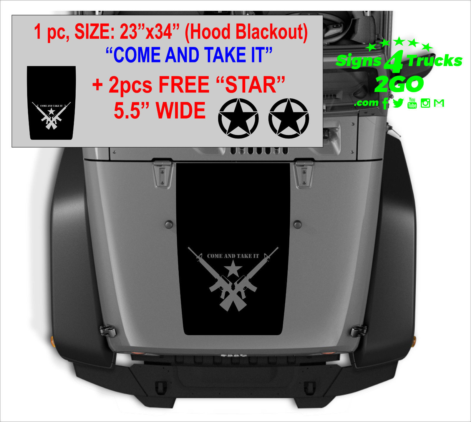 Hood Blackout Set - 1 +2 FREE Star Stickers Decals Vinyl Graphic JEEP WRANGLER JK