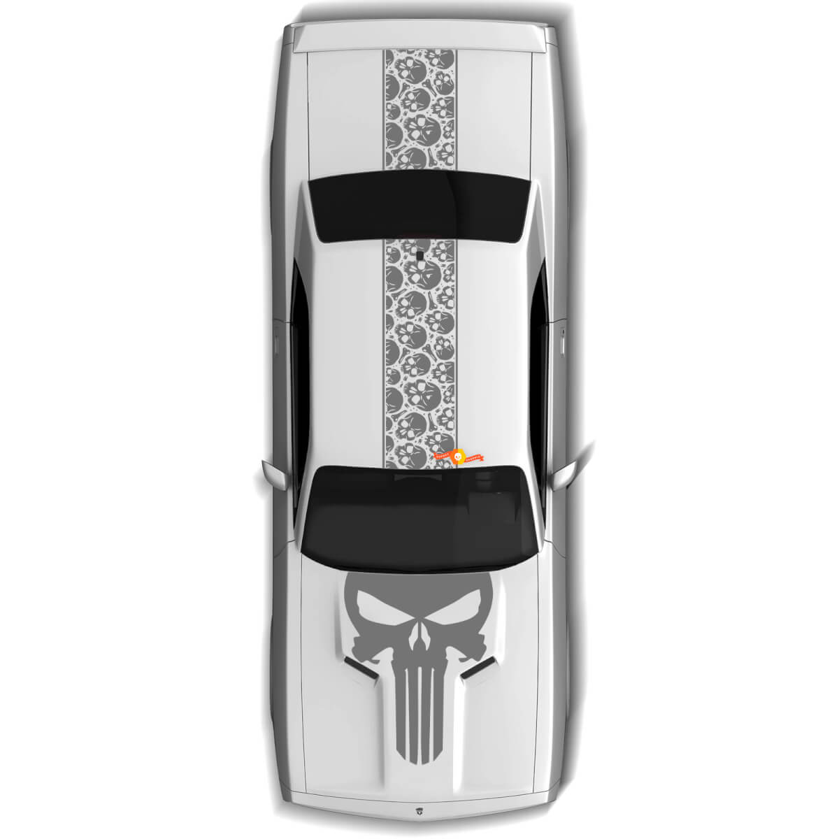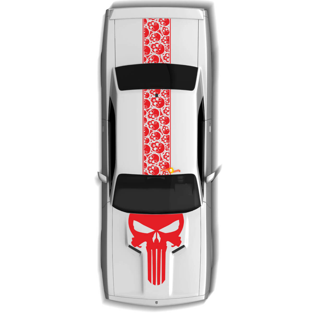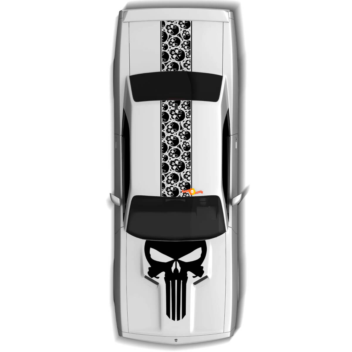 Unleash the beast with this Skull Hood and Roof Stripe Decal Kit for Dodge Challenger. Featuring a bold skull-themed design, these vinyl graphics run across the hood and roof, giving your muscle car a fierce, unmistakable look.