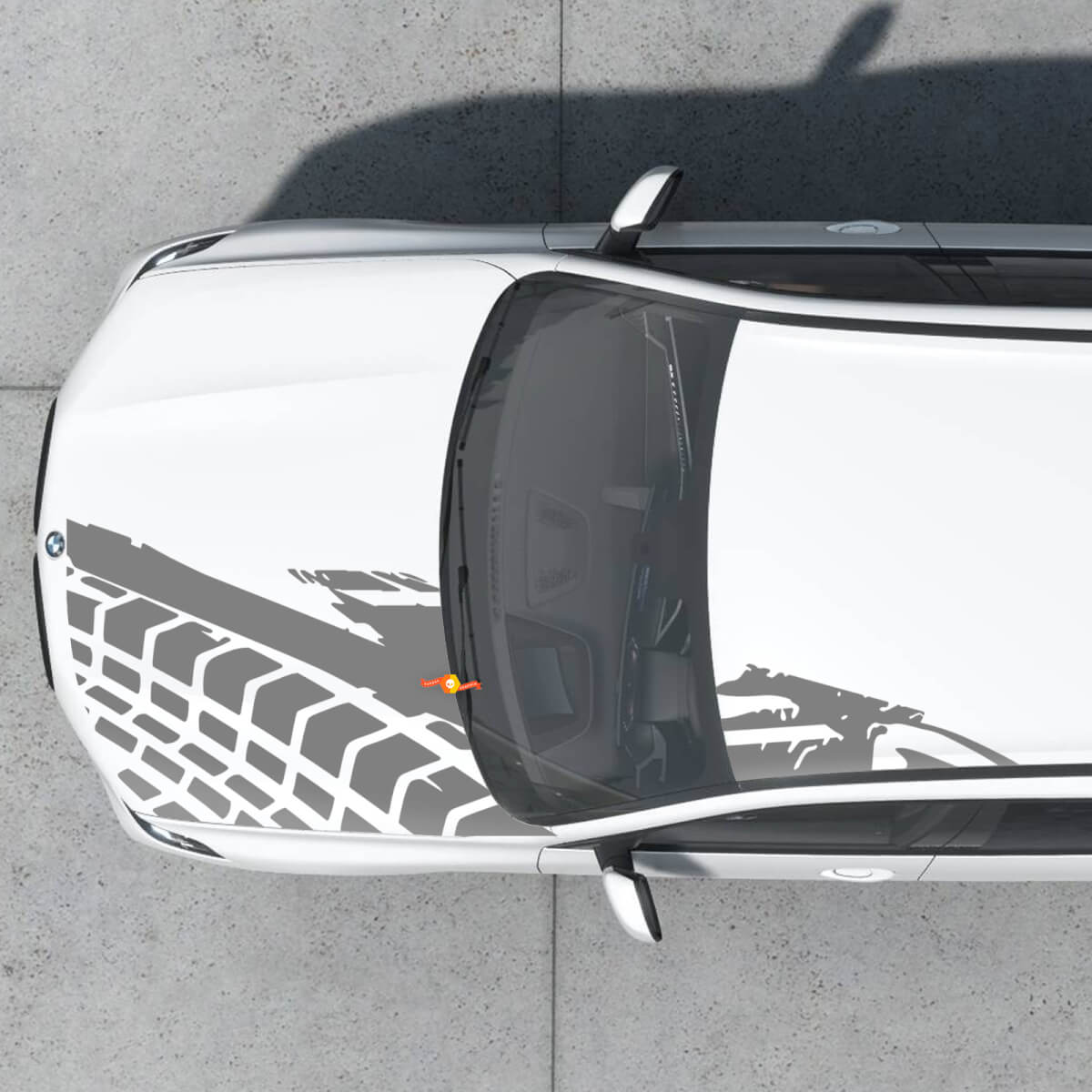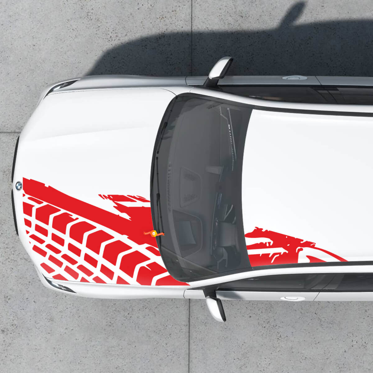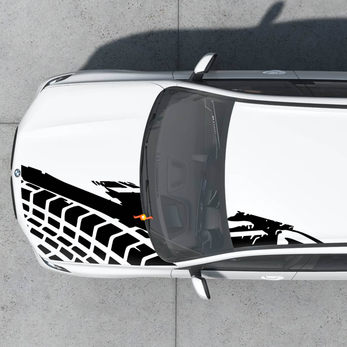 Bring off-road energy to any vehicle with this Splash Tire Track Hood & Roof Graphics Decal Kit. Featuring rugged tire tread marks in a splash layout, this design adds dynamic motion and trail-ready style to your car, truck, or SUV.