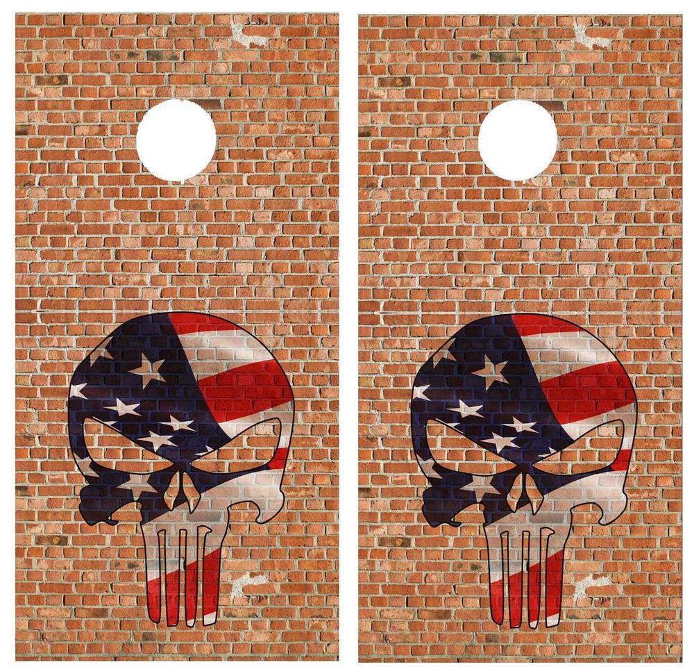 Brick Punisher Skull Cornhole Board Game Sticker Decal VINYL WRAPS with LAMINATED