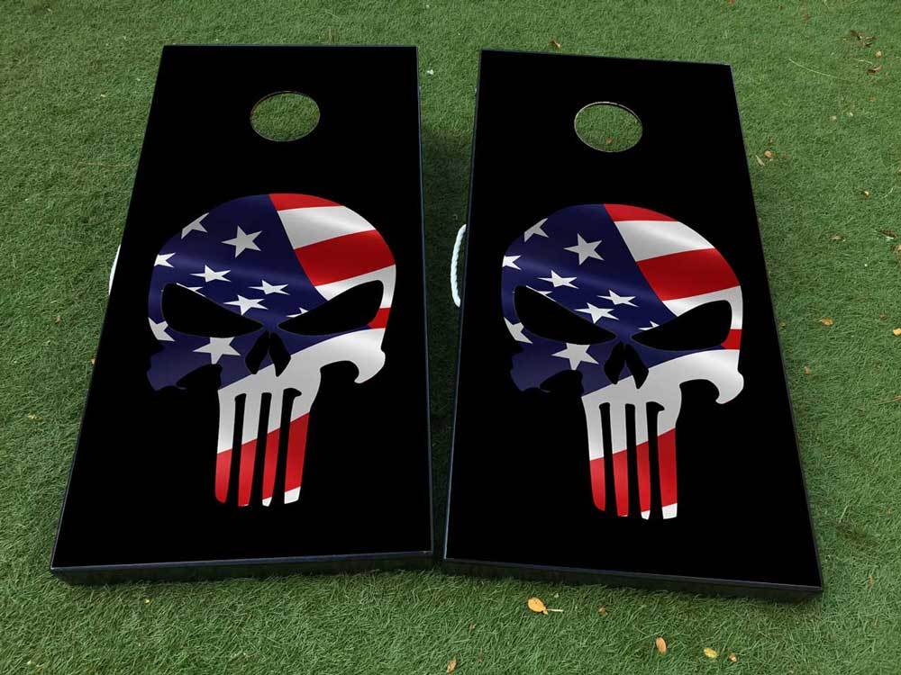 Black Punisher USA flag Cornhole Board Game Sticker Decal VINYL WRAPS with LAMINATED