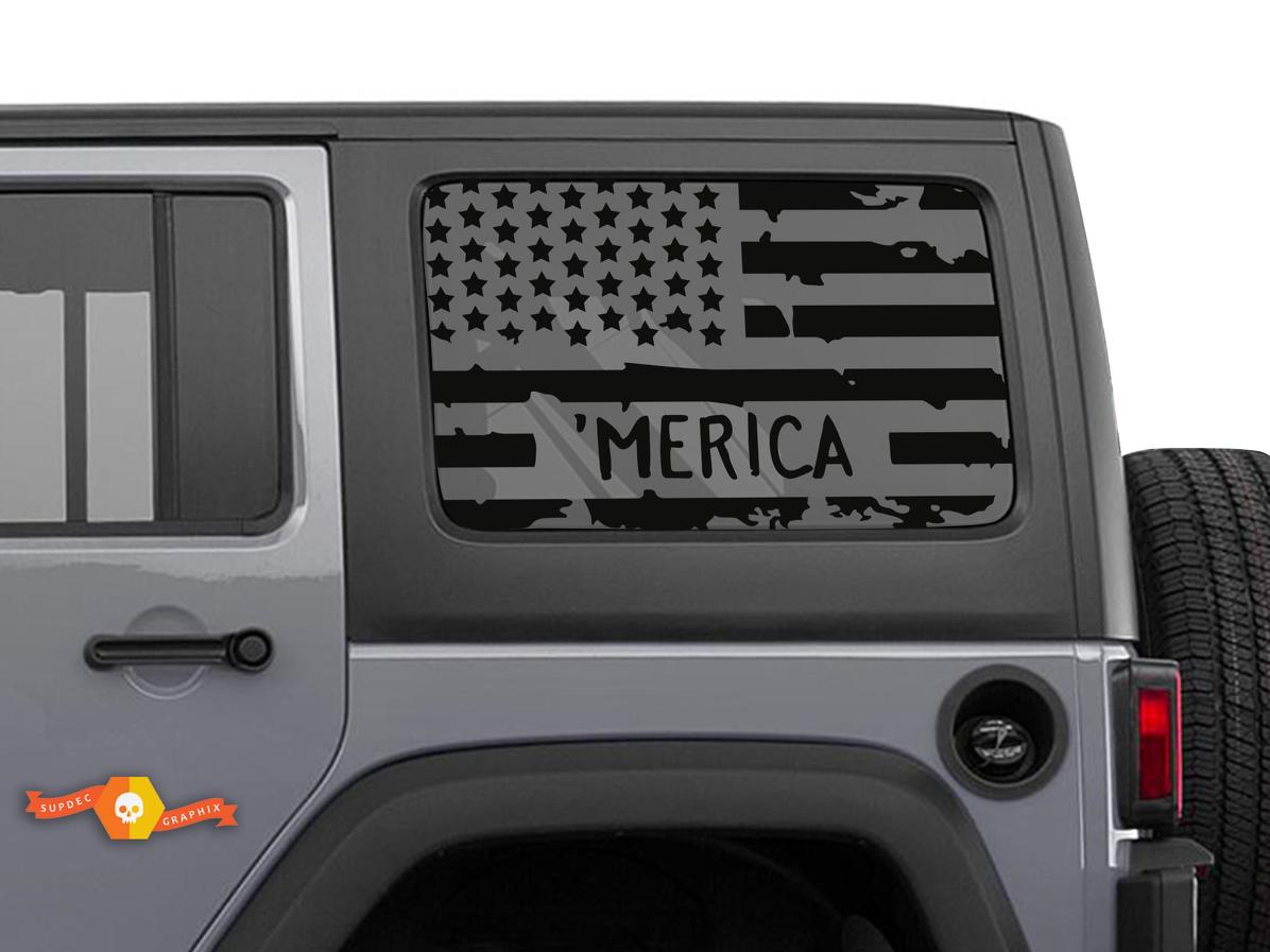 2x Jeep Hardtop Flag Sticker Decal - 'Merica - USA American Wrangler JKU Window