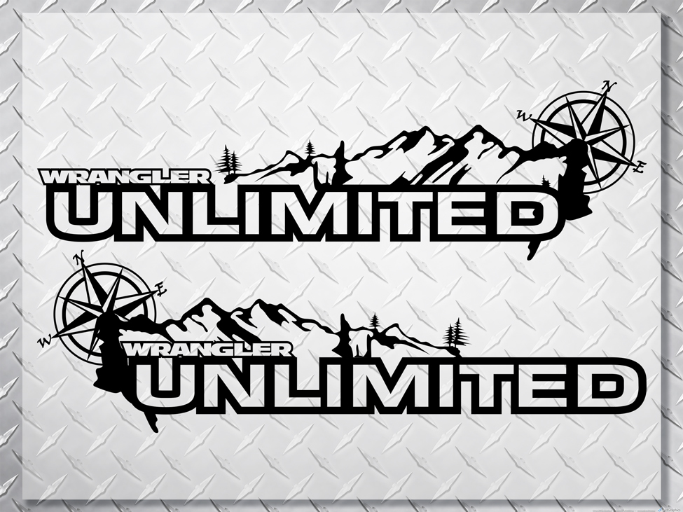 Pair Jeep Wrangler Unlimited Vinyl Hood Stickers Decals mountain compas