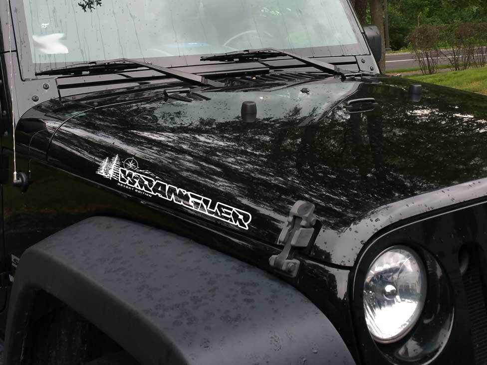 Pair Jeep Wrangler Unlimited Compass Mountains Tree Vinyl Hood Stickers Decals