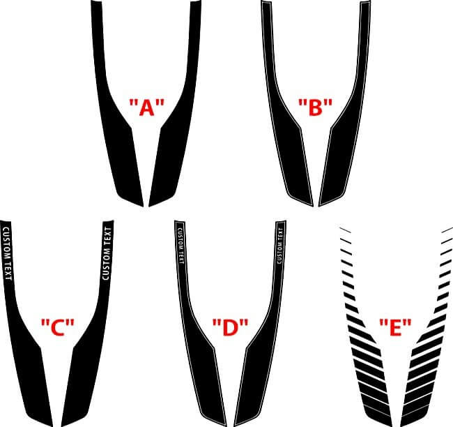 Unique vinyl stickers for Chevrolet Camaro models 2017 and newer, specially designed for the ZL1 versions, will give your car an expressive and dynamic look. These spear-shaped accent stripes on the hood are available in five different designs. You can choose a solid vinyl sticker that adds an aggressive and strict style, or the option of a sticker with beveled stripes that creates a sense of speed and sporty spirit.