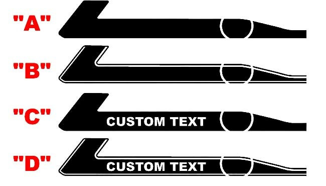 Yenko-style stripes for the Chevrolet Camaro are ideal for mounting on side doors, giving the car a dynamic and aggressive look. These stripes with a characteristic curved angle emphasize the powerful profile of the car. Customization is also provided: you can add your own text to the strip by selecting the appropriate sticker option. Make your Camaro even more unique by emphasizing its personality with high-quality Yenko-style vinyl strips.