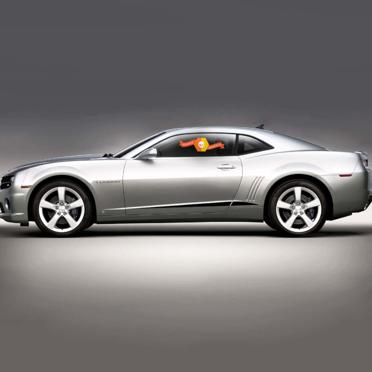 The 2010-2015 Chevrolet Camaro Lower Body Accent Stripes is a stylish sticker pack designed to give your Chevrolet Camaro a sporty and dynamic look. These accent stripes are installed on the underside of the body, adding bright and noticeable accents that accentuate the lines of the car.