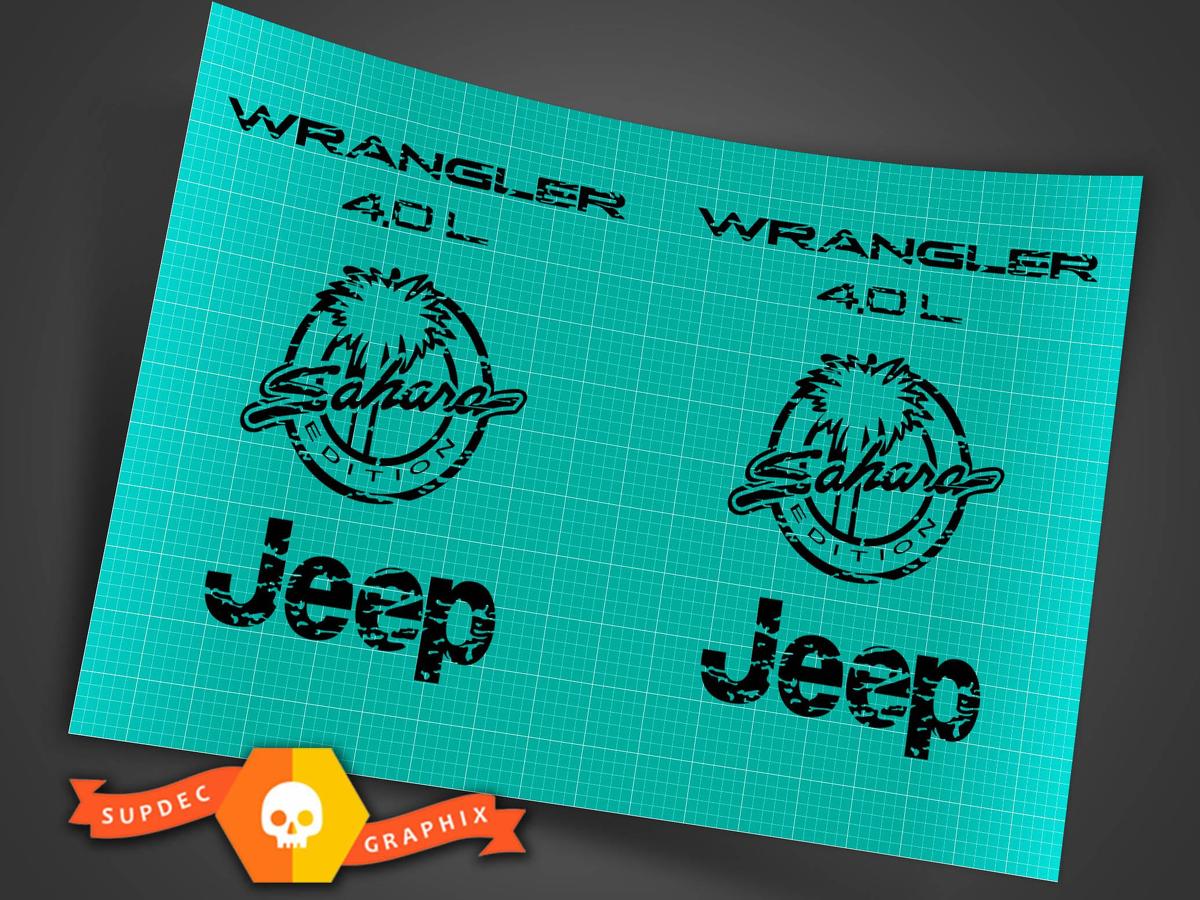 Jeep Wrangler Sahara 4.0 TJ fender logos distressed 1997 -2006