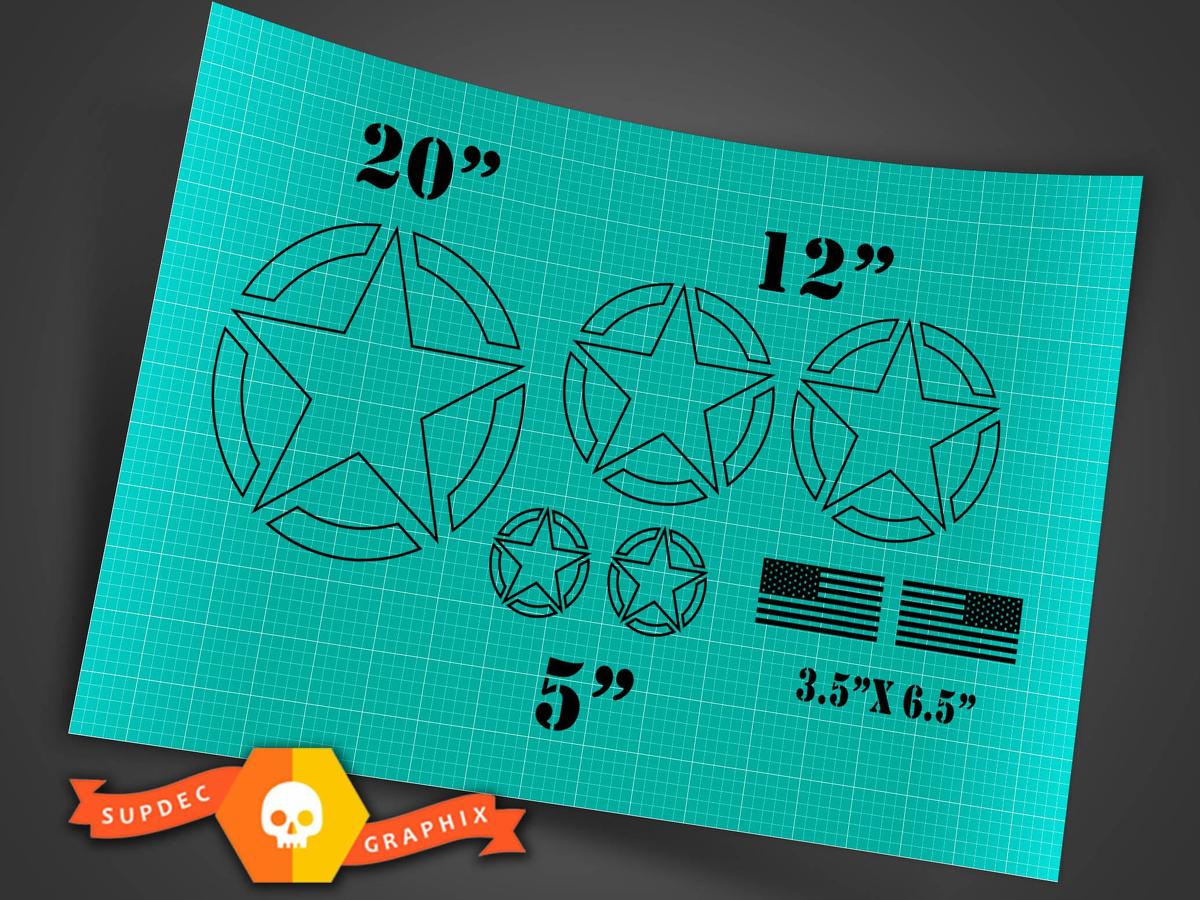 Jeep Wrangler military star basic 7 Sticker Decal kit