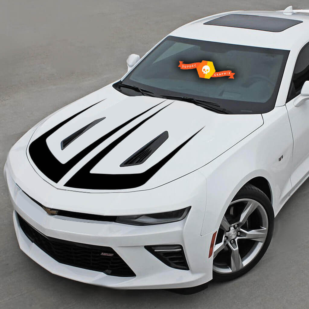 The graphic scalloped hood sticker of the Chevrolet Camaro is easily removable, allowing you to change the design without damaging the body. Transform your Camaro with our stickers and make it really bright!