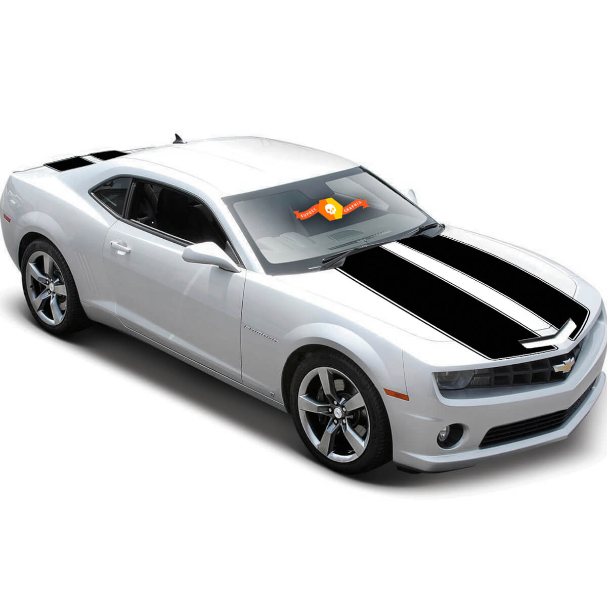 Bumblebee Transformers vinyl racing stripes for the 2010-2015 Chevrolet Camaro add a recognizable and powerful style to your car, inspired by the iconic image of Bumblebee from the Transformers series. These stripes stretch across the hood and trunk, emphasizing the dynamic lines of the Camaro and creating a spectacular accent that gives the car an aggressive and sporty look.