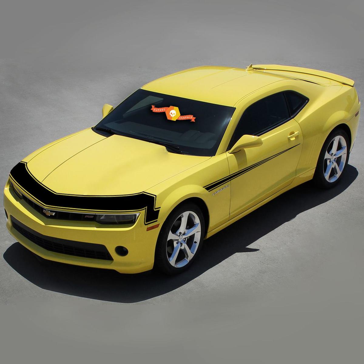 A unique opportunity to change your image and decorate your car in retro style. Vinyl front panel on the hood in retro style with vinyl stripes for CHEVROLET CAMARO models. Our vinyl stickers for the front panel of the Chevrolet Camaro 2010-2013 hood come with detailed installation instructions to make the process as simple and convenient as possible.