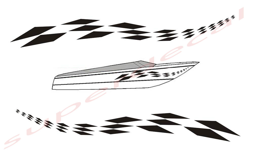 Quantity: pair of huge custom made checkered stripe boat decals, one for each side of the boat.