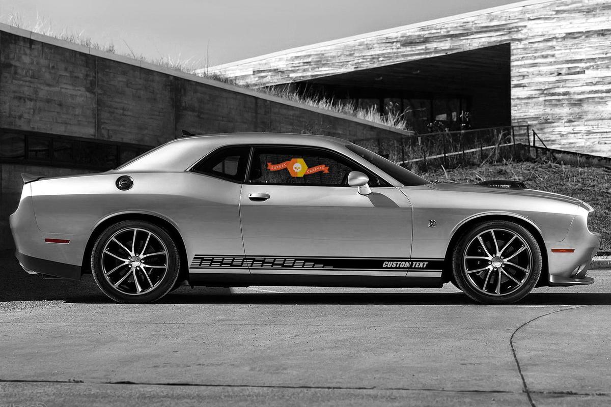 The creative and unusual results that developers get are our win-win offers for you! Necessary and inherent quality, strong water resistance, protection against bad weather conditions, the possibility of choice for any Dodge automobiles four-wheeled transports - this and much more that you have to learn immediately after that, as you will purchase our magic products in our online marketplace. In short, taking into consideration a specific example from our product range, we are ready to provide you with the perfect product, an icon of modernity, and an example of the absolute benefit to the client - this is Racing rocker panel stripes vinyl decals stickers for Dodge Challenger.