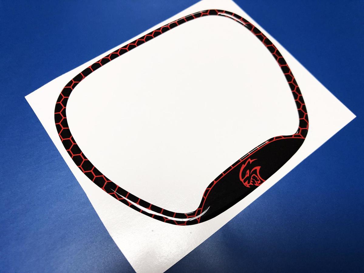Regarding the topic of accessories for custom car stickers, we would like to say that here the main criterion for the selection is absolutely the quality of the goods and all the resulting characteristics. Look more closely at one of the latest releases by our developers, namely Steering WHEEL TRIM Ring Hellcat Red Honeycomb domed decal Dodge. It is a completely new and fresh vinyl decal sticker accessory that can please you with its most important qualities in one place. Looking at the detail of the drawing, the smooth surface, and the combination of colors, one can immediately say that our guys are the very professionals of their business, on which one can certainly rely.