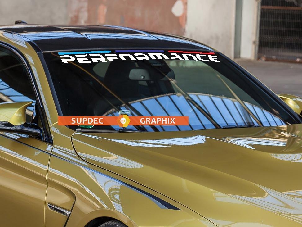 This banner window decal features a stylish design with the M Performance logo that adds a unique and personal touch to your vehicle. With a vinyl BMW window banner placed on your BMW windshield, your car will stand out from others on the road, drawing attention to its sporty appearance.